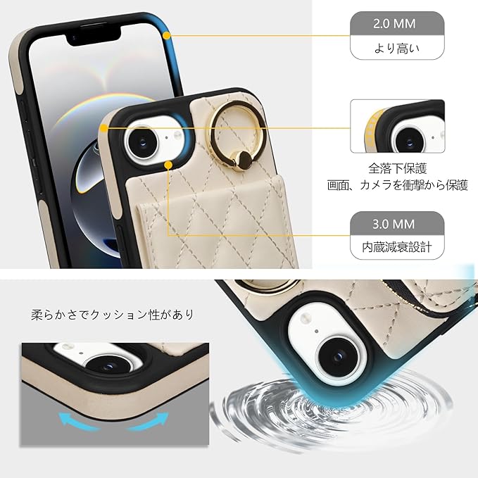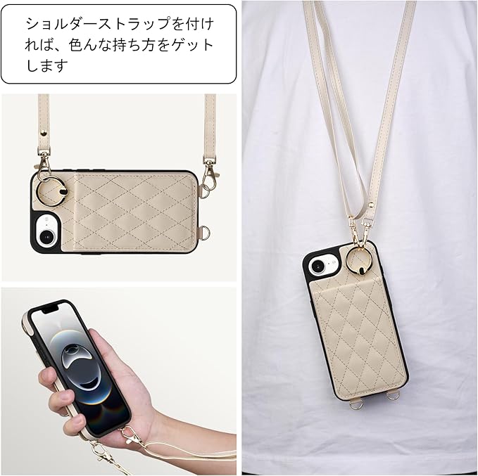 iPhone 16e 対応 ケース 手帳型 背面 カードケース ショルダー ストラップ いPhone 16e 用 背面ケース カード収納 キルティング アイフォン あいふおん 16e 用 カバー スタンド機能 肩掛け 首掛け PUレザー あいほん 16e 用 マグネット 可愛い チェック柄 レディース 女性向け おしゃれ 6.1inch ホワイト
