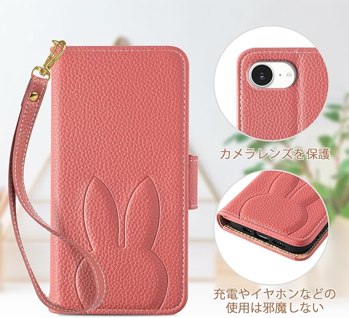 対応 iPhone 16E ケース 手帳型 かわいいウサギ おしゃれ 京セラ アイフォン16e ケース 手帳型 スタンド機能 カード収納 あいふおん16eケース iPhone16e スマホケース 全面保護 衝撃吸収 耐久性 マグネット式 いphone16e 携帯ケース iPhone 16e 手帳型ケース 指紋防止 仕上がり ご家族やご友人へのプレゼントにも,レッド