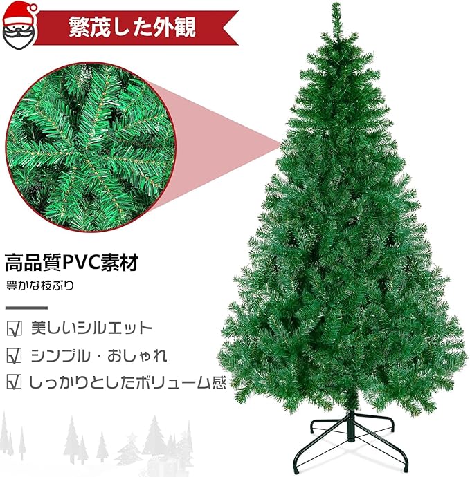 クリスマスツリーの葉は優れている高品質PVC素材で、枝も多く良く茂ていてまるで本物のようです。組み立て簡単だから設置も片付けもすぐにできちゃう♪収納する際にも場所を取りません、来年も続けて使えます。