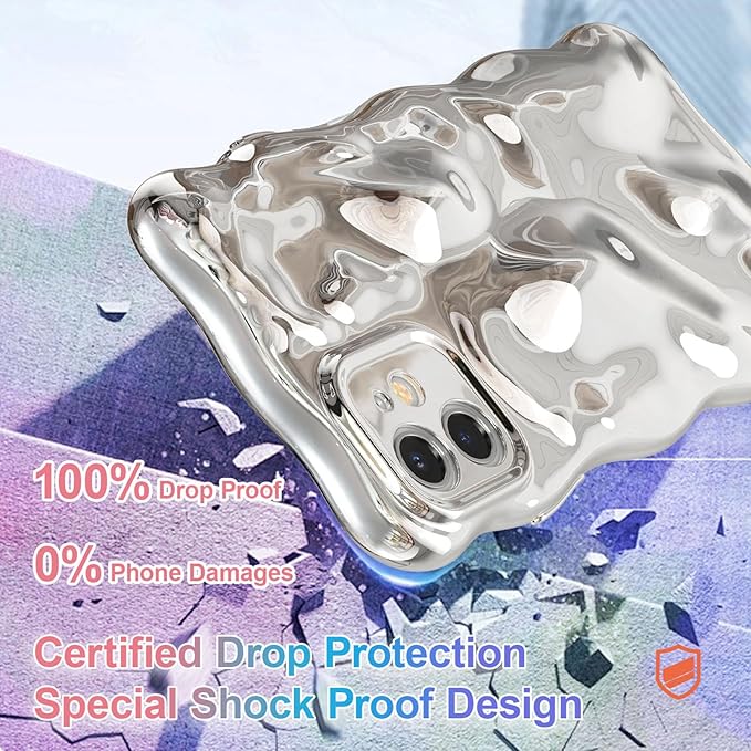 UEEBAI 対応 iPhone 12 用の ケース ウェーブデザイン スマホケース 可愛い 人気 おしゃれ ケース 薄型 軽量 グリッター 光沢カバー 耐衝撃 波型 バンパー スマホケース - シルバー