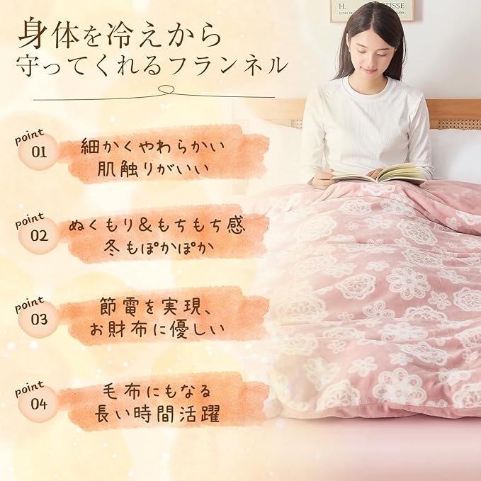 【ふわふわで保温性高い・フランネル生地掛け布団カバー 】高密度のフランネル生地を使用し、着心地が軽い同時に保温性が高いです。極細纎維の隙間に暖気を取り込み、さらに空気の層が外部の冷気を跳ね返します。その細かな纎維一つ一つの間に空気を取り込むことで、体温を逃さずしっかり保温。あたたかさをキープしてくれます。ぬくぬくの暖かさで、寒い時期には欠かせないアイテムです。