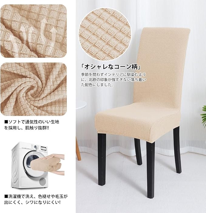 【撥水素材】ポリエステル+ポリウレタンの撥水性素材で作られ、高い耐久性を持ち、撥水機能も優れています。高密度で、水や飲み物が椅子についても弾くものなので、濡れにくくなります。 ストレッチ性 ※水量が多い場合には生地に水が染み込むなど、撥水効果が薄れます。 優れたストレッチ性で、チェアにぴったりフィットします。一人でも簡単に取り付けます。座面までピッタリ!ブカブカしない!
