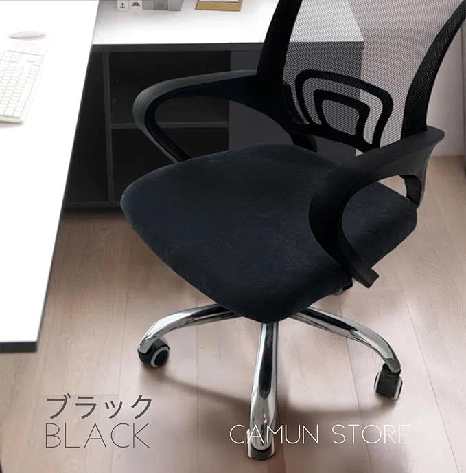 イスカバー オフィスチェアカバー 大きめ オフィスイスカバー 座面カバー フィット ワークチェアカバー 事務 椅子カバー 北欧 洗える ベルベット素材 (1枚入り, ブラック, XL(42-52cm))
