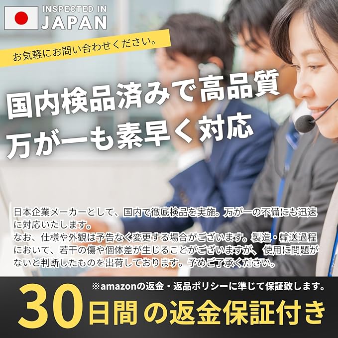 【 安心の日本国内検品&30日保証 】 日本国内で1つ1つ丁寧に検品されています。さらに、ご購入から30日の保証がついているため、万が一の際も安心してお使いいただけます。日本の会社が企画・販売している商品です。 こちらの商品を使用して万一、お手持ちの機器にキズ・損傷等が生じた場合でも、ご購入商品代金以上の保証・返金等はできませんので、ご了承願います。