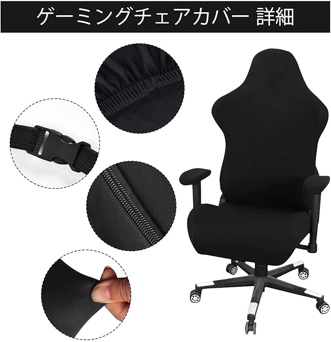 ゲーミングチェア カバー オフィスチェアカバー 黒 チェアカバー 洗える ゲーミングチェア カバー 座面 背面 アームカバー 事務椅子カバー 背もたれ フルカバー 伸びる