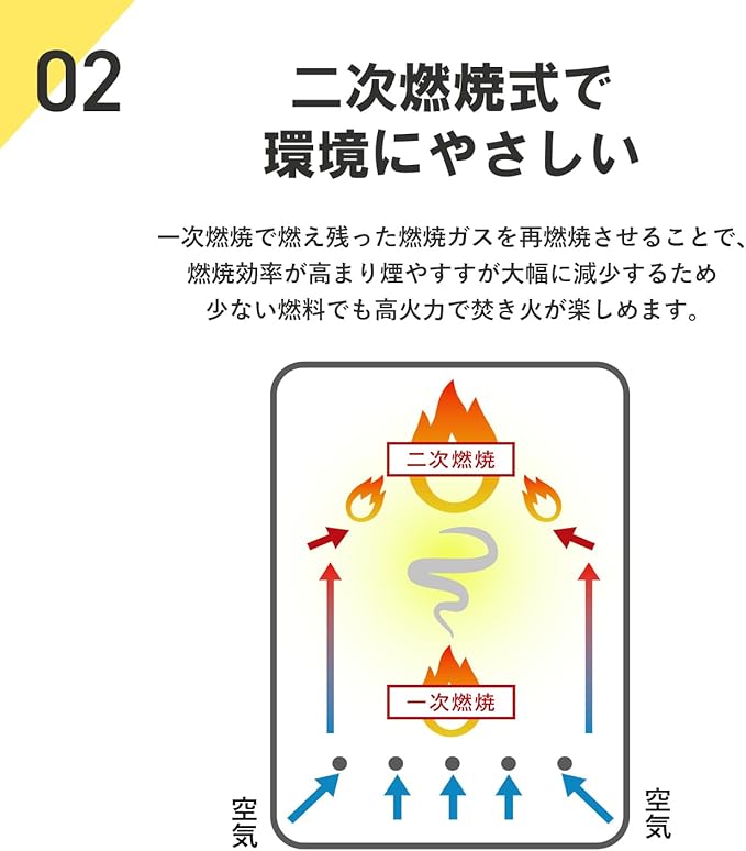 二次燃焼で一酸化炭素の放出を軽減