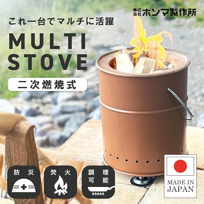 株式会社ホンマ製作所 HONMA マルチストーブ 小型 高さ調節 取っ手付 マルチ燃料 二次燃焼 調理可能 薪 木炭 豆炭 練炭 キャンプ アウトドア 防災 日本製
