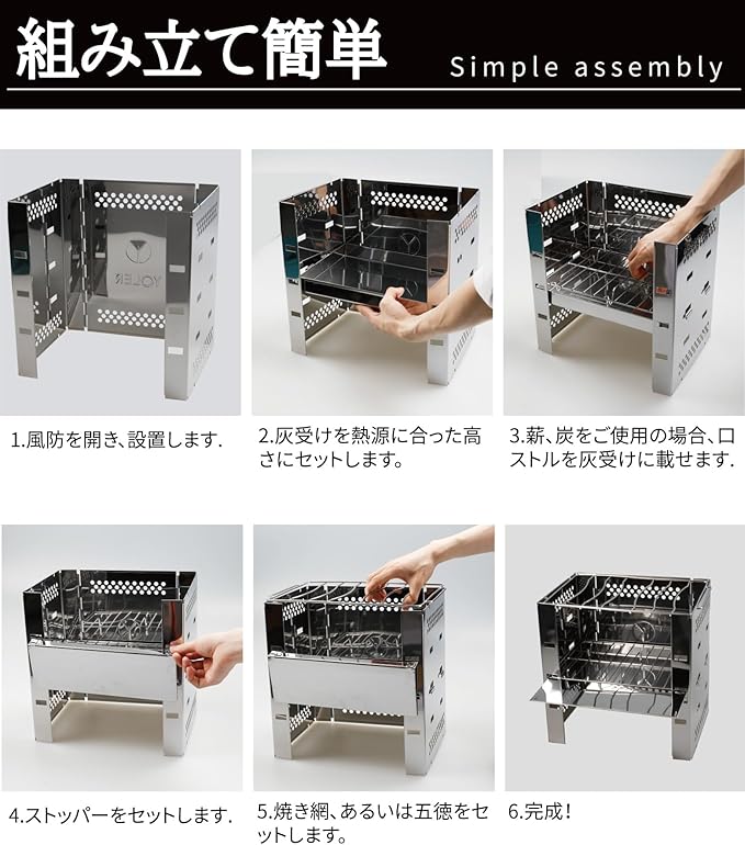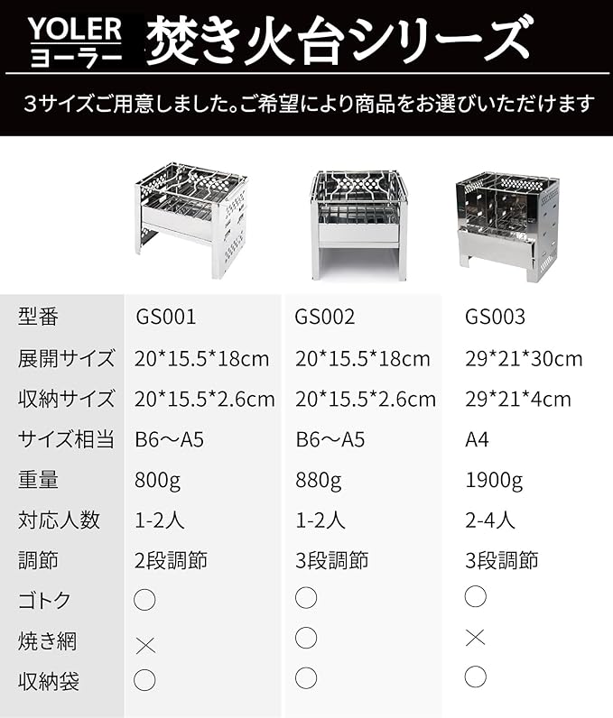 ヨーラー(YOLER) スマートフォールディングコンロ A4型 焚き火台 オリジナル 自由調節 2-4人用 キャンプ初心者向 GS003