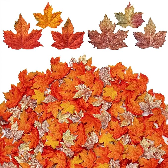 【自然なグラデーションカラー】赤・オレンジ・黄色が繊細に混ざり合い、本物のような深みのある色合い。1枚1枚微妙に異なるため、よりリアルな仕上がりに!本物のような質感ながら水やり不要で、季節の装飾を手軽に楽しめます。