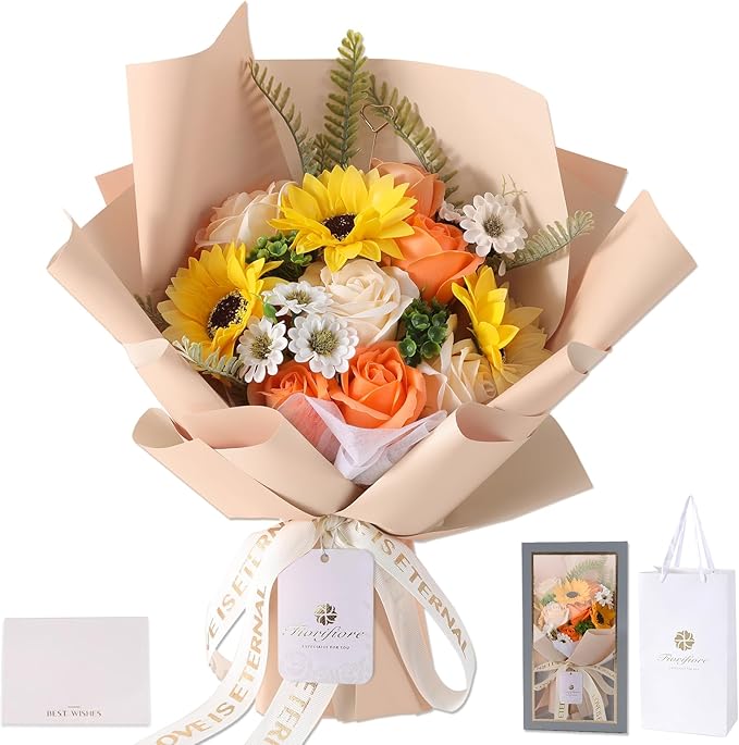 ソープフラワー ひまわり 花束 母の日 ギフト 人気 プレゼント 父の日 誕生日 造花 ひな菊 バラ 女性 卒業式 退職 送別 インテリア (Candice)