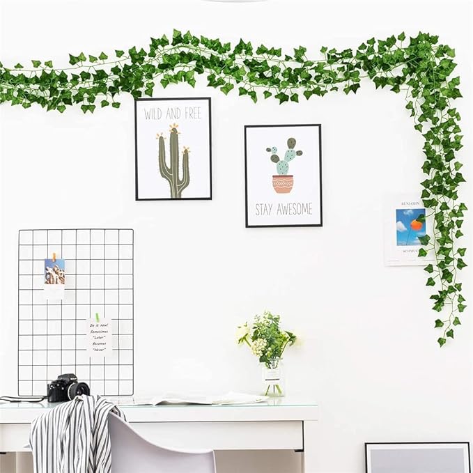 仕様概要:フェイクグリーンは24本入り、12本づつ束になって、長さは2.2メートルで、1本毎に約80枚の葉っぱは茎の左右に均一に分布しています。葉っぱは特別のハート形状で超可愛いです。何箇所に分けて使え、何本に合わせて飾り付けるとより雰囲気を出せます。材質:造花観葉植物の葉は絹の材質を採用して、光沢感を持ち、柔らかい手触りで、直径は1.4mmの茎はプラスチックで作られ、本物アイビーの生き生きする姿を再現します。細部まで心入れの作りで、葉落ち無く何度も使えて長持ちできます。造花アイビーは枯れない観葉植物、定期的に剪定は必要ありません、で水やり、掃除の世話が要らず、虫が寄り付かず。土がない室内にも四季にグリーンを楽しめ、忙しい方と植物の世話をすることに経験が足りない方に最適です。