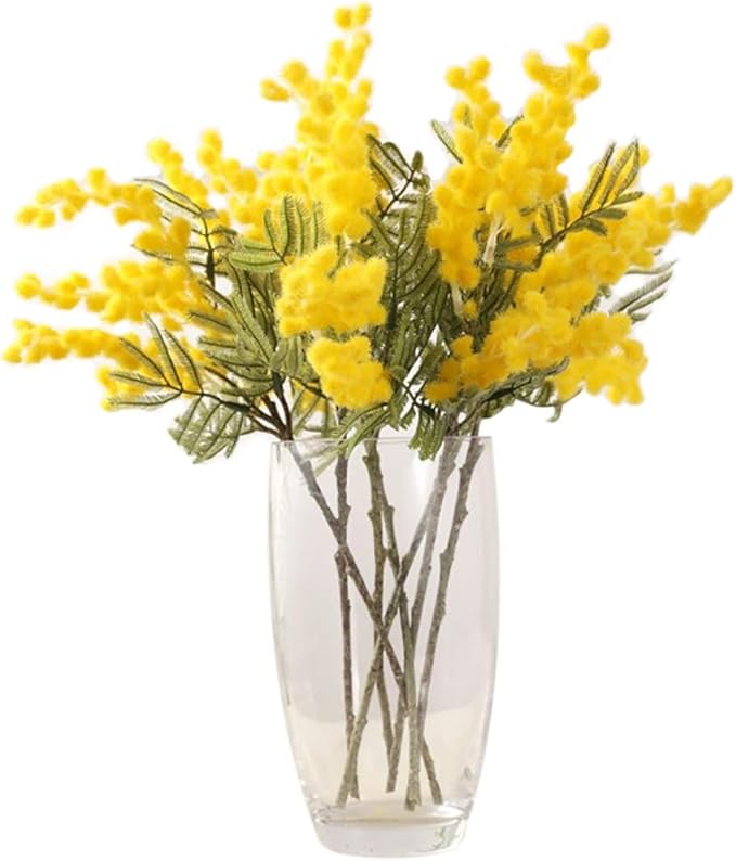 ミモザ アカシア 造花 アーティフィシャル フラワー 枝垂れ枝 春 ブライダル 装飾 (黄色【7本】)