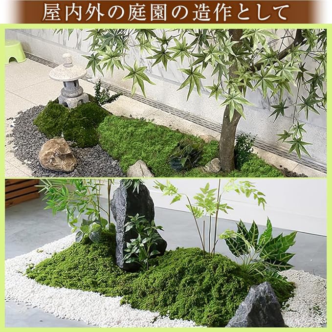 盆栽・鉢植え・庭園・ジオラマ・模型などアイディア次第で様々な用途でお使いいただけます。屋内/屋外問わず設置できる人工苔は、虫が寄ってきたり植物ならではの臭いが無いところもポイントです。