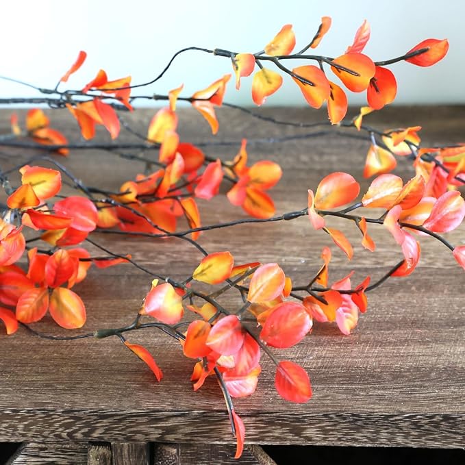 造花 紅葉茎 秋の葉の枝 5本セット オレンジ ユーカリの茎 人工観葉植物 秋装飾 ホームテーブルセンターピース 花瓶詰め飾り インテリア 感謝祭 クリスマスデコレーション 紅葉ピック 全長57cm