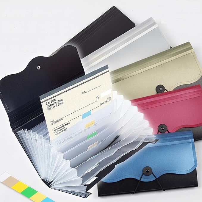 ドキュメントスタンド B5 ドキュメントファイル 13ポケット アコーディオン 書類収納ケース 色別ファイリング 区分けラベル付き 持ち運び 拡張ファイルフォルダー ジャバラファイル (ブラック, B5)