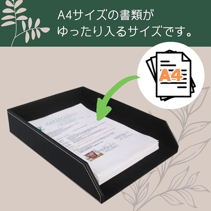 レターケース A4 書類トレー PUレザー 高級トレー デスク 書類整理 レザー書類 卓上収納 ブラック オフィス用品 幅34 奥行27 高さ6cm ブラック