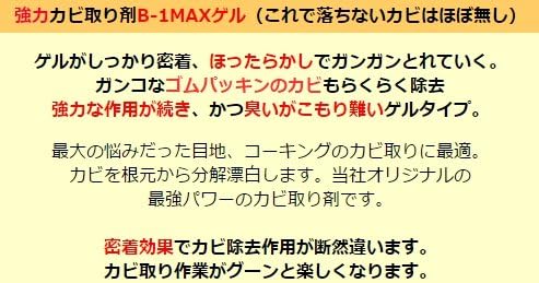 【劇的に落ちる!】野口商事 最強パワー 強力 カビ取り剤 【 B-1MAXゲル 】根元から分解漂白 【 お掃除 簡単 楽ちん 】しっかり密着するジェルタイプ ・たっぷり220g