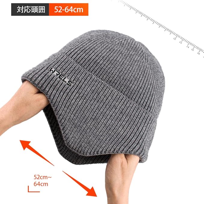 [WRELS] ニット帽 耳あて ニット 帽子 メンズ レディース 冬用 キャップ ヘッドウォーマ 52-64cm 防寒 保温 スノーボート サマーニット スキー 山登り