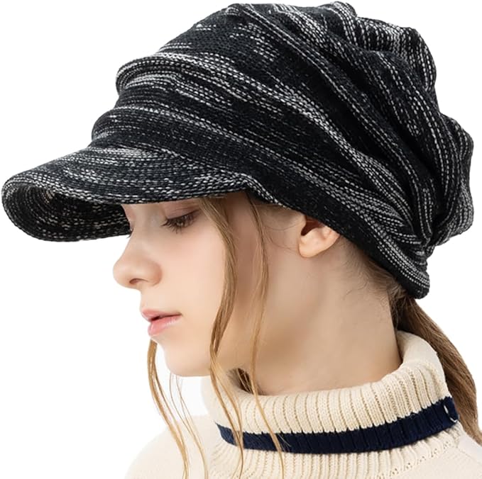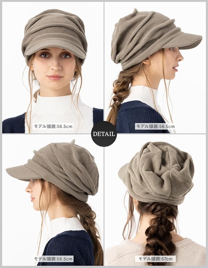 [Loo&c] 帽子 つば付き ニット帽 リンクルニットキャスケット 大きいサイズ レディース ゆったりサイズ ワッチ ニットキャップ メンズ 防寒 耳あて