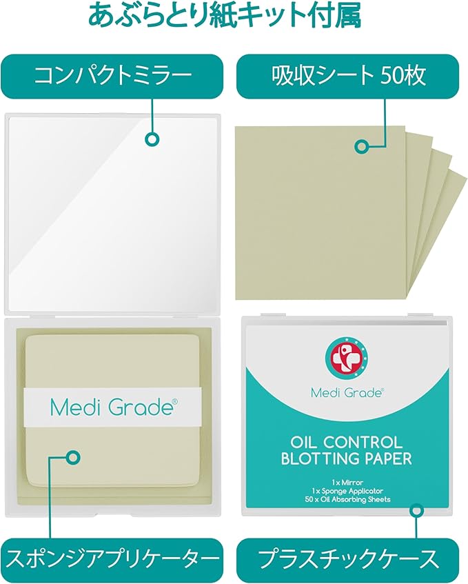Medi Grade ブラックヘッド除去ツール - 毛穴ケアと肌のお手入れ用7点セット - 50枚の油吸収あぶら取り紙付き - 黒ずみが気になる方のスキンケアキット
