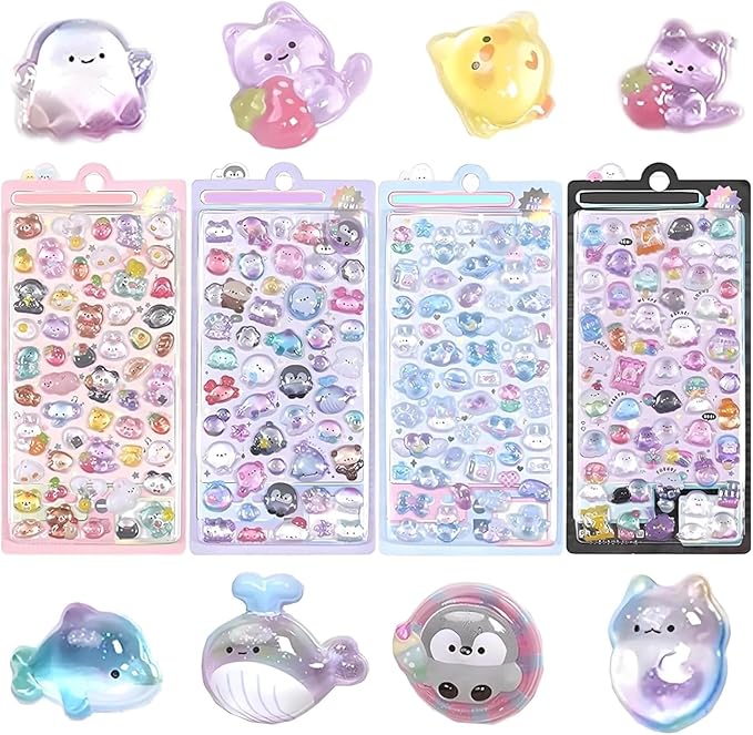シール 可愛い 4枚セット 3D立体 ぷくぷく ごほうびシール DIY用 手帳用 キラキラ 女の子 デコシール 携帯電話飾り スマホケース 贈り物 手芸用品 (4ピーススタイル)