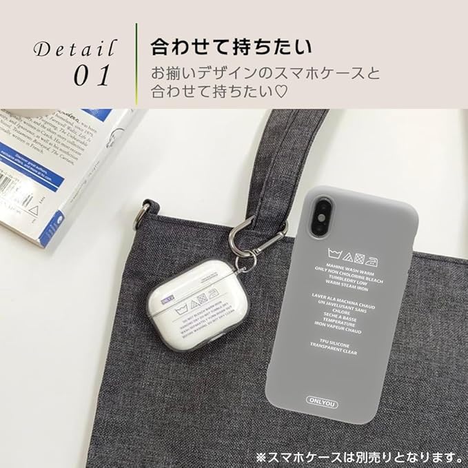 ONLYOU Airpods 用 ケース 第2世代 韓国 第1世代 ランドリー タグ 洗濯タグ デザイン クリア 透明 エアーポッズ カバー かわいい 大人 可愛い おしゃれ イヤホンケース (ブラック)