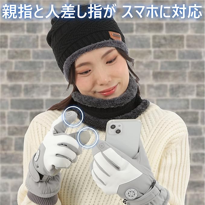 REGAMOIR ニット帽 ネックウォーマー 手袋 3点セット スマホが使える手袋 チクチクしない帽子 裏起毛 自転車 バイク通勤 スキー スノーボード レディース