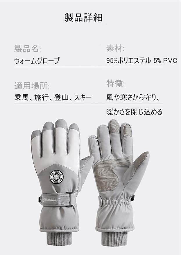 【適用場所】乗馬、旅行、登山、スキーなど。風や寒さから守り、暖かさを閉じ込めるグローブです。