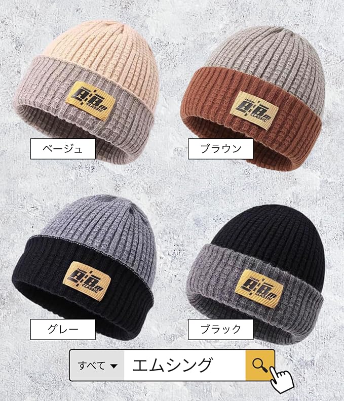 [エムシング] リバーシブル ニット 帽子 スキー スノボ ゴルフ 防寒 ウィンタースポーツ 秋 冬 MEN WOMEN