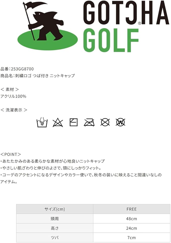 [ガッチャ] ゴルフ 刺繍ロゴ つば付き ニットキャップ メンズ ユニセックス ゴルフウェア ニット帽 帽子 秋 冬 253GG8700