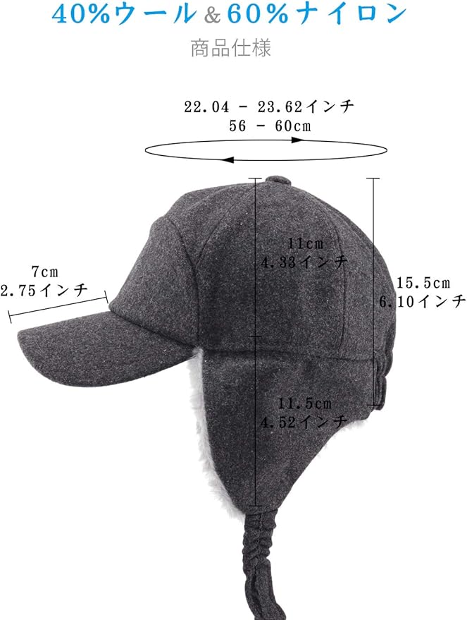 【レディース メンズ 大きい キャップ】:56-60CM頭周り。11.5CM帽子耳。男性も女性もぴったり似合うできます。