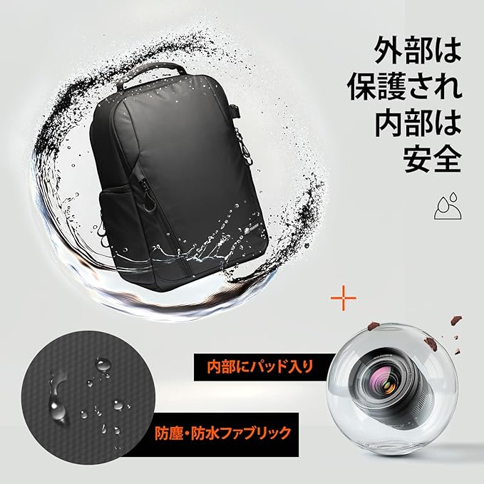 【大容量カメラバッグ】純粋なカメラバックパック、サイズが約27.5*17*41㎝になります。内部はミニマリズムに基づき、空間を最大限度に有効利用できるようにデザインされたため、同サイズのリュックより収納力が大きい。