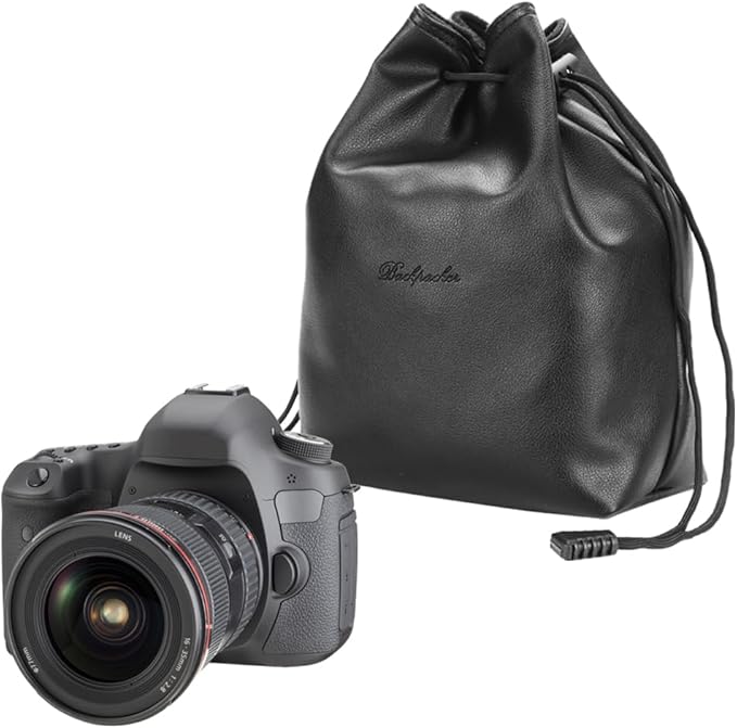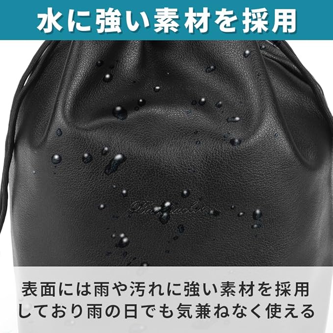 カメラ収納バッグ 巾着型 飛び出し防止 持ち運び レンズ SDカード ポケット付き (Mサイズ)