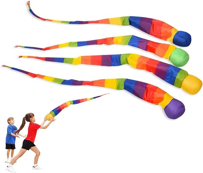 DFsucces 虹色トス 4個セット ひらひら 飛ぶ 投げる飛行おもちゃ 鮮やかな布製ボール 親子で楽しむ 露キャンプ 公園 アウトドア活動に最適