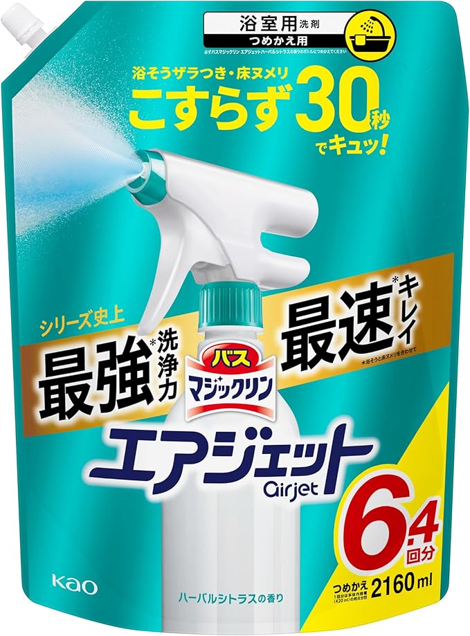 【大容量】バスマジックリン エアジェット お風呂 洗剤 浴そうザラつき・床ヌメリこすらず30秒でキュッ! ハーバルシトラスの香り つめかえ用 2160ml