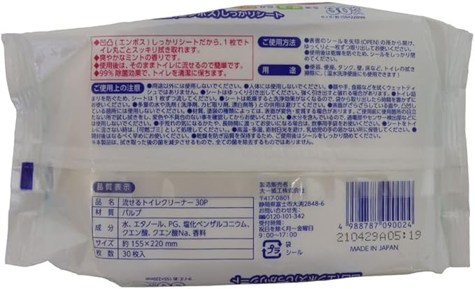 流せる トイレクリーナー 1440枚(30枚入 48個セット)お掃除シート 除菌&消臭 エンボスシート トイレ掃除 便器 便座 タンク 壁 床 お掃除 日本製