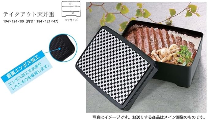 J-kitchens テイクアウト天丼重 鰻重箱 黒に松 ABS樹脂、ポリプロピレン製 19.4x12.4x8cm 日本製