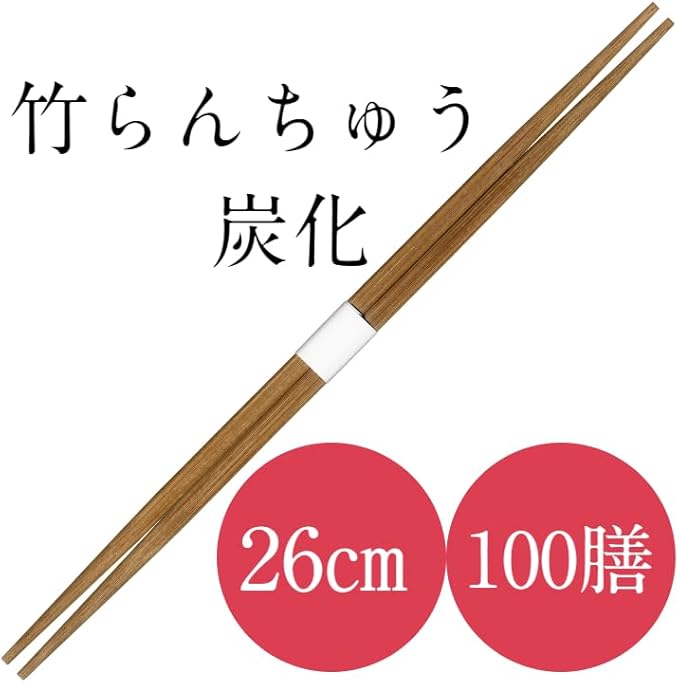 九州紙工 竹 26㎝ らんちゅう 卵中 竹箸 炭化 帯巻 100膳 使い捨て 業務用 ホテル 旅館 高級感 飲食店 TRC261