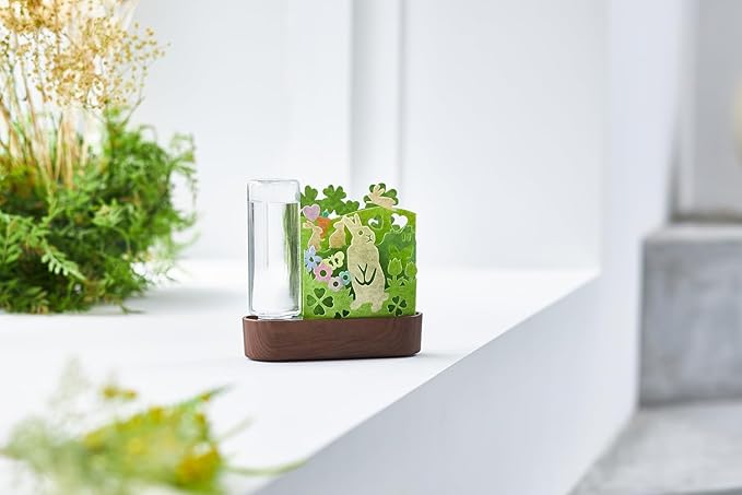 新しい「うるおい」は、自然や動物のシルエットで、楽しく躍動感のある商品を企画。水受けトレイは、緑を多めに取り入れたイラストにマッチする、木目調を採用します。愛嬌いっぱいの、うさぎたちを草花と絡めたシルエットで表現。緑色をベースに差し色で華やかに演出。裏面にも印刷し立体的な仕上がりに。ウイルス予防、冬の乾燥対策に向けた加湿アシスト! 電気を使わないeco仕様で、加湿能力はコップ約10杯分! お部屋のインテリアとして飾れるアート感覚の加湿器!