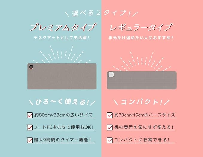 【注意事項】ご購入後は付属の説明書のご確認を必ずお願いいたします。肌の同じ個所に一定時間、連続して触れ続けないようご注意ください。肌に異変を感じた時は使用を中止してください。パソコンの下での使用は、熱暴走の危険があるためお避けください。パソコンが加熱中のマットに触れないようにご注意ください。スマートフォン等のバッテリーを内蔵した家電を上に置くのもお避けください。収納の際はやさしく巻いてください。折り目をつけるように曲げないでください。製品のカラーはご覧のモニターや撮影時の条件により、実物の色と異なる場合がございます。ご了承の上、ご購入ください。
