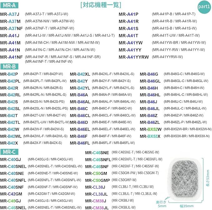 対応冷蔵庫の形名一覧: MR-A41TU、MR-A41TU-W、MR-A41T-UW、MR-A41T-W、MR-A41YW、MR-A41YW-BR、MR-A41YW-W、MR-A41YYRWW、MR-A41YYW、MR-B42T-W、MR-B42T-UW、MR-B42TL-W、MR-B42TL-UW、MR-B42TLU、MR-B42TLU-W、MR-B42TL-W、MR-B42TU、MR-B42TU-W、MR-B42W-F、MR-B42W-S、MR-B42WL-F、MR-B42WL-S、MR-B42X-F、MR-B42X-S、MR-B42XL-F、MR-B42XL-S、MR-B42Y-F、MR-B42YL、MR-B42YL-F、MR-B42YL-S、MR-B46AL-P、MR-B46AL-W、MR-B46A-P、MR-B46A-W、MR-B46ZL-P、MR-B46ZL-P1、MR-B46ZL-W、MR-B46ZL-W1、MR-B46Z-P、MR-B46Z-P1、MR-B46Z-W、MR-B46Z-W1、MR-B46Z-W2、MR-B46Z-P2、MR-B46ZL-W2、MR-B46ZL-P2、MR-BX52W-BR、MR-BX52W-N、MR-BX53X-BR、MR-BX53X-BR1、MR-BX53X-N、MR-BX53X-N1、MR-JX47LA-N、MR-JX47LA-RW、MR-JX47LW-BR、MR-JX47LW-N、MR-JX47LW-RW、MR-JX47LW-W、MR-JX48LX-N、MR-JX48LX-N1、MR-JX48LX-RW、MR-JX48LX-RW1、MR-JX48LX-W、MR-JX48LX-W1、MR-JX48LY-N、MR-JX48LY-N1、MR-JX48LY-RW、MR-JX48LY-RW1、MR-JX48LY-W、MR-JX48LY-W1、MR-JX48LZ-N、MR-JX48LZ-N1、MR-JX48LZ-RW、MR-JX48LZ-RW1、MR-JX52A-N、MR-JX52A-N1、MR-JX52A-RW、MR-JX52A-RW1、MR-JX52W-BR、MR-JX52W-N、MR-JX52W-RW、MR-JX52W-W、MR-JX53T、MR-JX53T-N、MR-JX53X-N、MR-JX53X-N1、MR-JX53X-RW、MR-JX53X-RW1、MR-JX53X-W、MR-JX53X-W1、MR-JX53Y-N、MR-JX53Y-N1、MR-JX53Y-RW、MR-JX53Y-RW1、MR-JX53Y-W、MR-JX53Y-W1、MR-JX53Z-N、MR-JX53Z-N1、MR-JX53Z-RW、MR-JX53Z-RW1、MR-JX53Z-N2、MR-JX53Z-RW2、MR-JX55LW-BR、MR-JX55LW-N、MR-JX55LW-RW、MR-JX55LW-W、MR-JX56LJY、MR-JX56LJY-N、MR-JX56LJY-W、MR-JX56LX-N、MR-JX56LX-RW、MR-JX56LX-W、MR-JX60A-N、MR-JX60A-N1、MR-JX60A-RW、MR-JX60A-RW1、MR-JX60W-BR、MR-JX60W-N、MR-JX60W-R、MR-JX60W-RW、MR-JX60W-W、MR-JX61W、MR-JX61W-BR、MR-JX61X-N、MR-JX61X-RW、MR-JX61X-W、MR-JX61Y-N、MR-JX61Y-N1、MR-JX61Y-RW、MR-JX61Y-RW1、MR-JX61Y-W、MR-JX61Y-W1、MR-JX61Z-N、MR-JX61Z-N1、MR-JX61Z-RW、MR-JX61Z-RW1、MR-JX64W-BR、MR-JX64W-N、MR-JX64W-RW、MR-JX64W-W、MR-R44A-F、MR-R47T、MR-R47T-F、MR-R47T-S、MR-R47W-F、MR-R47W-S、MR-R47X-F、MR-R47X-S、MR-R47Y-F、MR-R47Y-W、MR-R47Z-F、MR-R47Z-F1、MR-R47Z-W、MR-R47Z-W1、MR-R52T-F、MR-R52T-S、MR-R52W-F、MR-R52W-S、MR-RX46A-F、MR-RX46A-W、MR-RX47T-N、MR-RX47T-RW、MR-RX47T-W、MR-RX52T-N、MR-RX52T-RW、MR-RX52T-W、MR-RX57T-N、MR-RX57T-RW、MR-RX57T-W、MR-RX62T-N、MR-RX62T-RW、MR-RX62T-W、MR-WX47A-BR、MR-WX47A-BR1