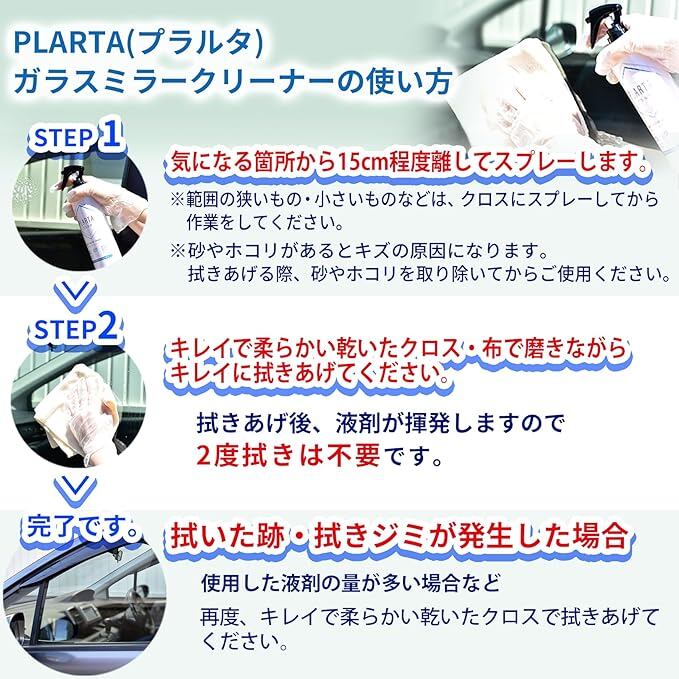 PLARTA(プラルタ)ガラスミラークリーナー 300ml 風呂 鏡 曇り止め 浴室 お風呂 洗面台 最強 車 フロントガラス リアガラス 内窓 透き通る輝き