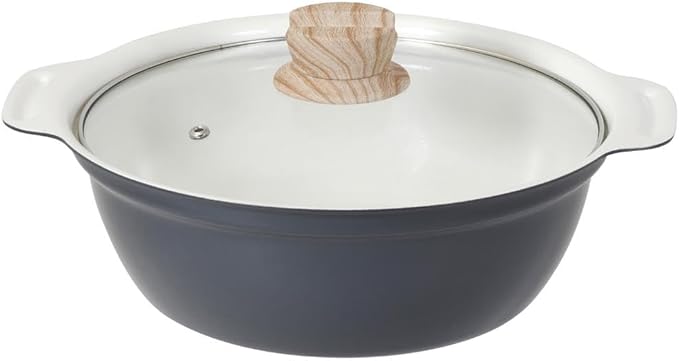 LIV PLUS 卓上鍋 両手鍋 28cm IH ガス火対応 ガラス蓋付 セラミック グレー NQ-0415 ビストロ・セラミック