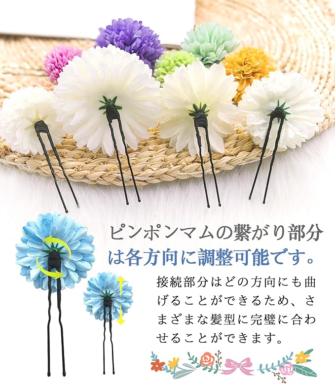 [JZOON] 成人式 髪飾り【12色展開】 ピンポンマム 紐 ドライフラワー 七五三 浴衣 袴 着物 飾り 振袖 和装 卒業式 結婚式 水引 かすみ草 造花 手作りかわいい 白 F3710