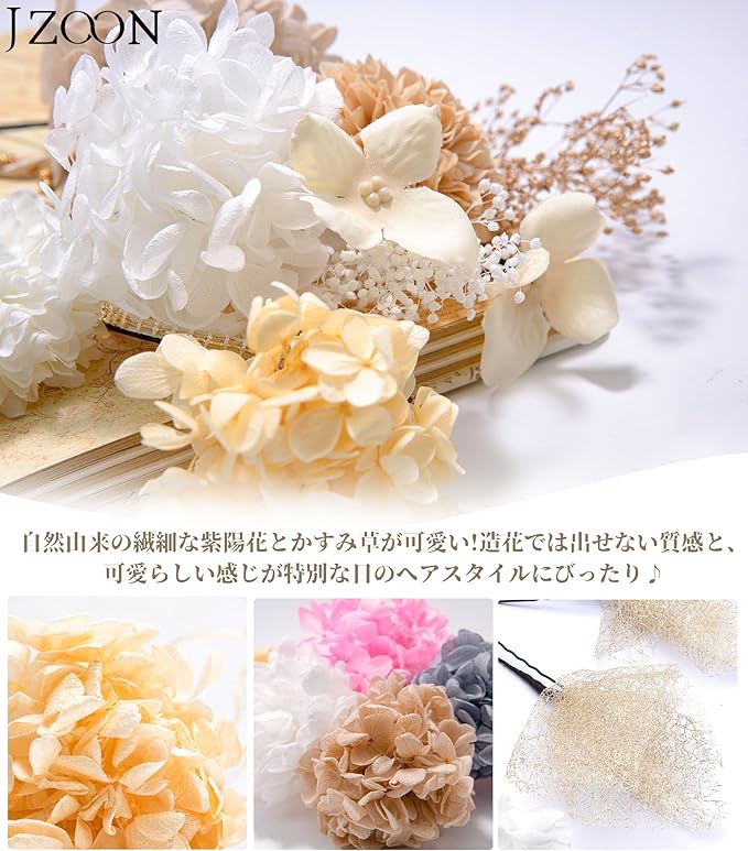 [JZOON] 髪飾り 成人式 ドライフラワー 袴 卒業式 和装 結婚式 振袖 着物 浴衣 プリザーブドフラワー 金箔 紐アレンジ 水引 和玉 A7001