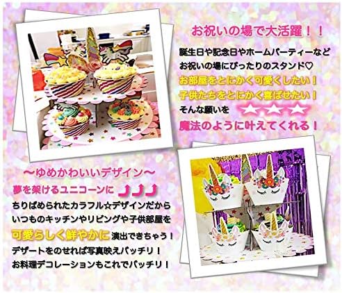 OneHorse 3段 ユニコーン ケーキスタンド テーブル デコレーション ゆめかわいい パーティー 装飾 飾り付け 紙製