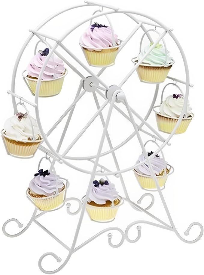 観覧車 型 デザート ケーキ ディスプレイ モアスタンド 8個 回転式 ホームパーティ イベント カップケーキ パーティー (ホワイト)