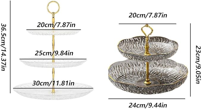 ケーキスタンド 2段 お菓子皿 果物展示スタンド デザートスタンド フルーツプレート 組み立て式 お菓子 果物 ケーキ 収納 展示用 誕生日 結婚式 アフタヌーンティー パーティー 自宅 ケーキショップ用(透明ゴールド)