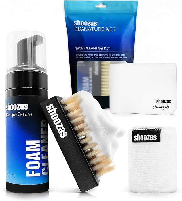 当社の4点シグネチャーキットは、安全で迅速、簡単なクリーニングに必要なすべてを含んでいます。 フォームクリーナー: 5オンスの無臭クリーニングフォーミュラで、色にも優しく、素早く乾燥します。 クリーニングマット: 防水かつ折りたたみ可能なシリコンマットで、カウンターや表面を保護し、迅速に掃除できます。サイズ:縦28cm x 横38cm。 万能ブラシ: 握りやすいブラシで、繊細な素材に優しく、汚れやシミがついたソールも強力に掃除できます。 マイクロファイバータオル: ソフトで洗濯可能なタオルは余分なフォームを吸収し、靴が早く乾くのを助けます。サイズ:縦23cm x 横25cm。 Shoozasメソッドの3ステップで最高の結果を得ましょう: 1. クリーニングマットに靴を置き、汚れた部分に直接フォームをポンプします。 2. 万能ブラシで円を描くように靴を擦ります。 3. マイクロファイバータオルで余分なフォームを取り除き、靴を室内で自然乾燥させます。 最適な素材: レザー、プラスチック、ゴム、ソール、白いスニーカーに最適です。キャンバス、布、コットン、ニット、メッシュ、スエード、ヌバック、ビニールには、まず小さな部分でテストし、慎重に使用してください。 指示通りにのみ使用してください。子供やペットの手の届かない場所に保管してください。目に入らないようにし、長時間の皮膚との接触や吸入を避けてください。涼しく乾燥した場所に保管してください。