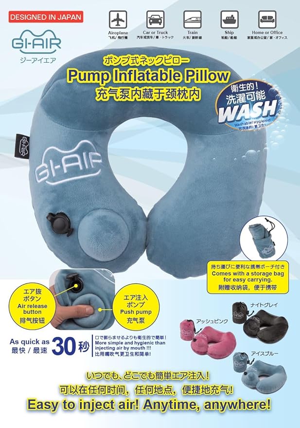 【人気商品】 GIAIR ポンプ式 衛生な手押しポンプ かわいい 快適 エアー 首枕 出張 旅行 トラベル アウトドア ネックピロー 飛行機 車 新幹線 夜行バス 機内 社内 コンパクト ポーチ付き 携帯 飛行機 旅行 機内 トラベル 防災 枕 エアピロー クッション 事務所 インテリア コンパクト (グレープワイン)